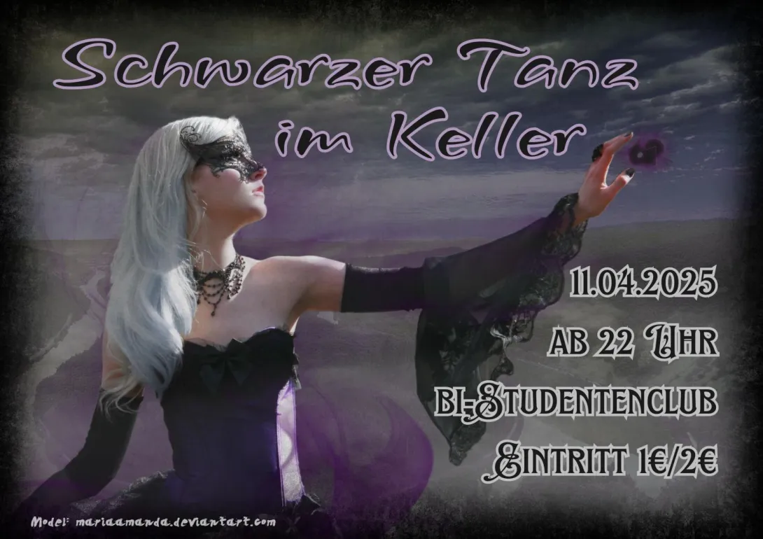 Gothrock, Darkwave, EBM, Synth- und Futurepop, das und vieles mehr erwartet euch zum Schwarzen Tanz im Keller!Neben den Klängen der Musik sorgt auch die atmospheärische Dekoration für eine schöne düstere Stimmung.Auch für das leibliche Wohl wird gesorgt!