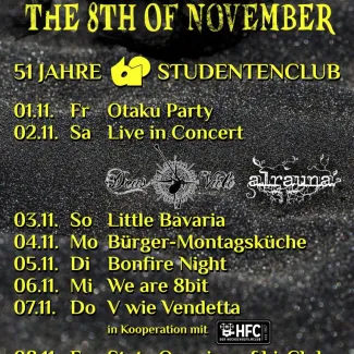 All unsere Keller-Räumlichkeiten wurden von unseren persönlichen Yeomen of the Guard durchsucht und für sicher befunden. Nun also können wir sie betreten und das neue Jahr für den Club mit großem Pompom und Party willkommen heißen. 22 Uhr sollten alle königlich geladenen Vereinsgäste erschienen sein und der Einzug des gemeinen Studentenvolkes kann beginnen.Unsere altgedienten Veteranen werden euch dann mit allem versorgen, was ihr benötigt.