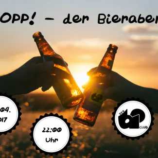 Plopp! Mit diesem Geräusch beginnt so manch feucht-fröhlicher Abend. Nach 501 Jahren wird Bier immer noch nach dem deutschen Reinheitsgebot gebraut und ist nicht mehr wegzudenken - egal, ob wohlverdientes Feierabendbier oder das siebte Bier im Club, das halb auf der Tanzfläche landet. Und weil wir Bier einfach toll finden, widmen wir dieser kulinarischen Bereicherung einen ganzen Abend. Mit einer erweiterten Auswahl an deutschen Bieren neben unserem Standardangebot warten wir auf dich! Was steht einer Verköstigung mit Freunden also noch im Weg?