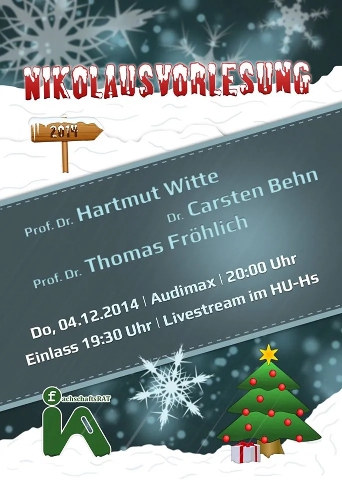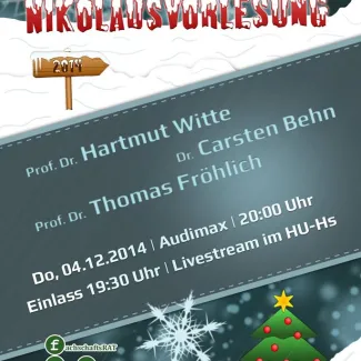 Wann? 04. Dezember 2014, 20.00 Uhr (Einlass ab 19.30 Uhr) Wo? Audimax der TU Ilmenau Wer? * Prof. Dr. Hartmut Witte * Dr. Carsten Behn * Prof. Dr. Thomas Fröhlich