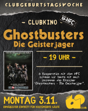 Zusammen mit dem HFC zeigen wir den Film „Ghostbusters – Die Geisterjäger”. Wie bei jeder Öffnung gibt es natürlich auch Snacks und Getränke. Kommt also vorbei und schaut diesen fantastischen Klassiker mit uns!