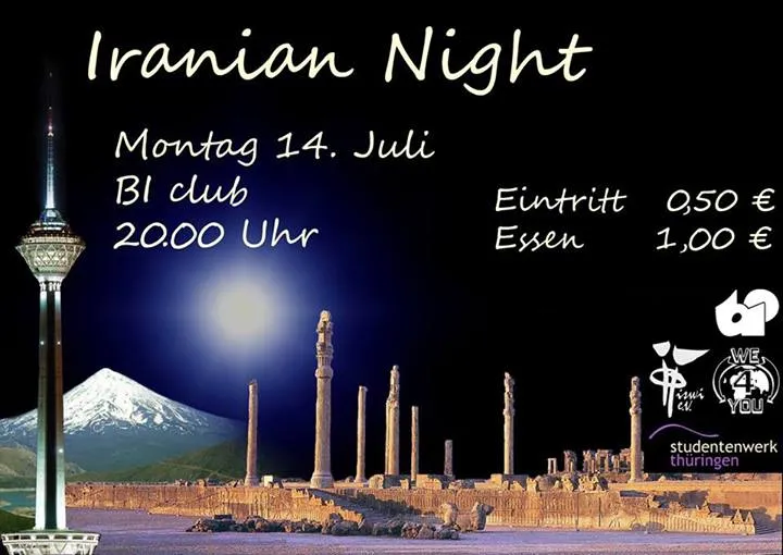 In Zusammenarbeit mit we4you (Akademisches Auslandsamt der TU Ilmenau) veranstalten wir einen internationalen Abend bei uns im Club. Thema diese Abends wird die iranische Kultur und Küche sein. Unsere iranischen Kommilitonen tischen Spezialitäten der landestypischen Küche auf.